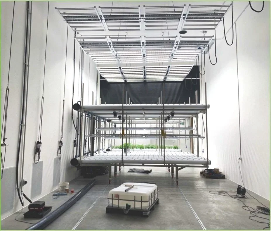 Skalierung: Bau und Inbetriebnahme der Aeroponik-Indoor-Referenzanlage in doppelstöckiger Bauweise mit rd. 200m2 reiner Anbaufläche, Anbau von Cannabis (CBD)